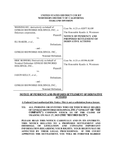 Notice of Pendency and Proposed Settlement of Derivative Actions